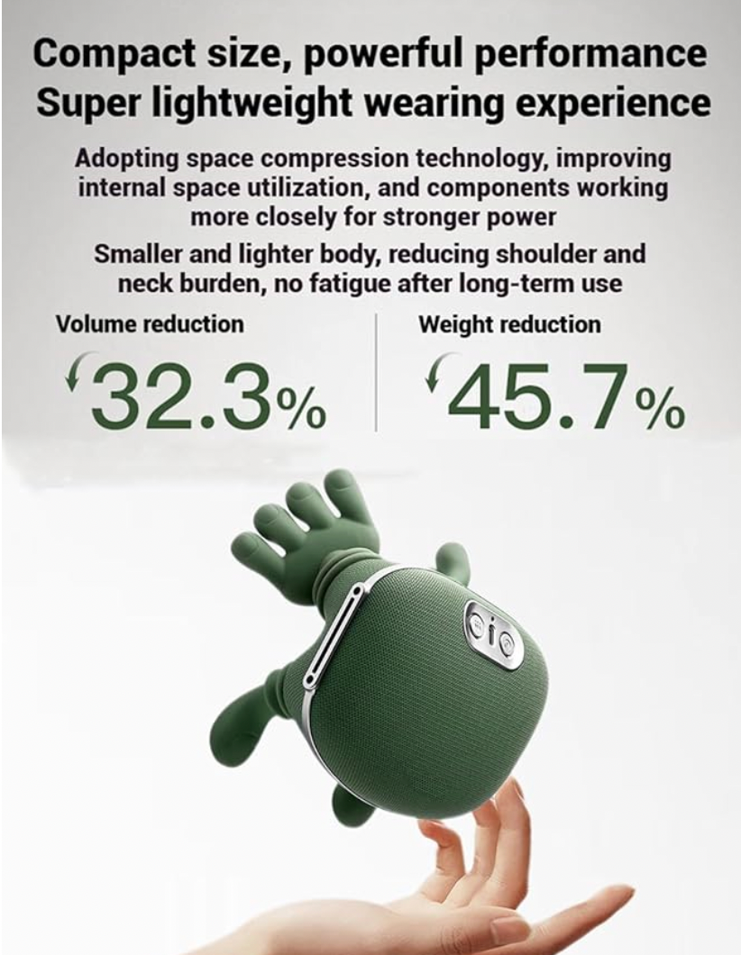 Perfect tiny hands-free massager for your neck, shoulders, backs, and legs to relieve pain and relax the muscles.